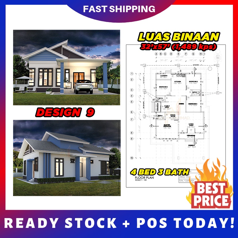 Buy House Design Design Rumah 1 Tingkat Pelan Rumah Lengkap Dan 3d Perspektif Berkeluasan 1 000kps To 1 500kps Seetracker Malaysia
